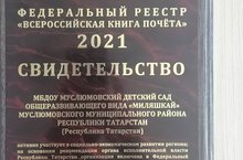 "Милэшкэй" балалар бакчасы тобэкнен социаль-икьтисади усешендэ актив катнашып Татарстан Республикасынын башкарма хакимияте органы тэкьдиме нигезендэ оешма "Ботенроссия Мактау китабы" Федераль реестрына кертелде.