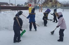 Мөслим “Миләшкәй” балалар бакчасында, мәктәпкә әзерлек төркеме, озын яллардан соң үз участокларына кар чистартырга чыкты. Иртәдән балалар түземсезлек белән урамга чыгуны көттеләр. Көрәкләр белән коралланып, участокка киттек. Эшкә тотындык, җиңел булмады, әммә безнең балалар кар чистартуны дәвам иттеләр, кайберәүләр тукталырга теләмәделәр, участокның бөтен территориясен җыештырдылар. Юлны кардан чистарткач, ял итәргә һәм кар көртләрендә уйнарга булдык, бик күңелле булды.