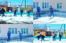 8 нче класс укучылары территорияне кардан чистарттылар/Учащиеся 8 класса под руководством учителя технологии Маликова И.И. очистили территорию от снега.