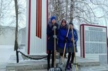 7 нче класс укучылары "Мәңгелек хәтер" акциясен хезмәт десанты белән бергә оештырдылар. Алар Бөек Ватан сугышы батырларына куелган обелискны атна дәвамында чистартып тордылар. / Учащимися 7 классов организована акция «Вечно живые», с участием трудового десанта. Они приняли участие в очистке памятника павшим воинам ВОВ и прилегающей к нему территории от снега.