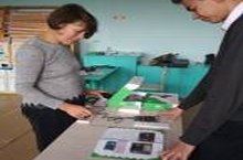 8 нче сыйныф укучылары физика дәресендә лаборатор эш вакытында температура датчикларыннан файдаландылар (укытучысы Вәлиуллина Ә.М.)/Учащиеся 8 класса на уроке физики во время лабораторной работы пользовались датчиком температуры (учитель Валиуллина А.М.)
