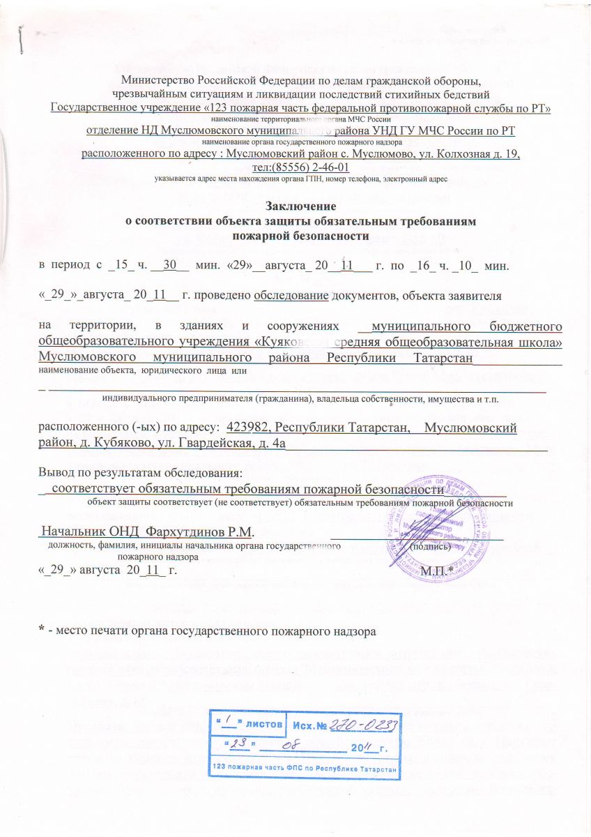 | Адрес: | 423982, Республика Татарстан, Муслюмовский район, д.Кубяково, улица Гвардейская, дом 4а |
