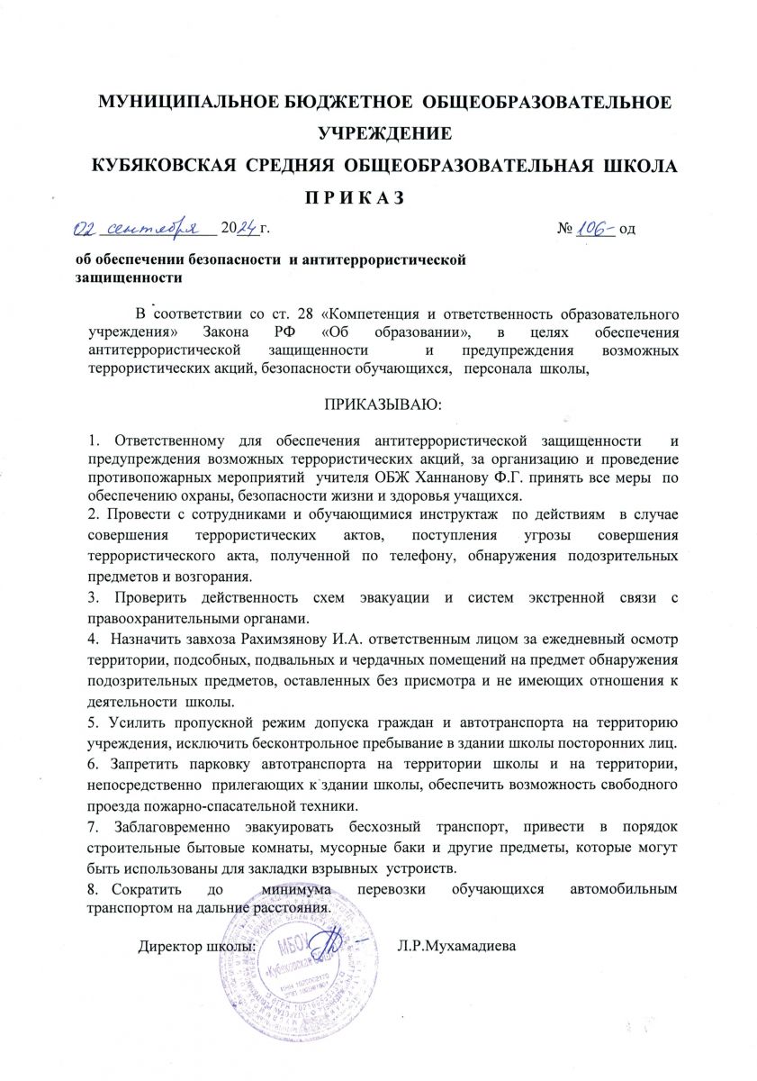 - План действий по обеспечению безопасности персонала и учащихся от проявлений терроризма