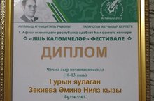 5а сыйныфы укучысы Зәкиева Әминә "Яшь каләмчеләр" республика фестивалендә 1 урынга лаек булды.