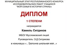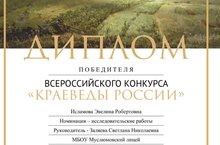 Исламова Эвелина - Победитель Всероссийского конкурса "Краеведы России" в номинации "Исследовательские работы" 16.03.2022