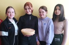 "Мөслим кызы-Мөслим егете" муниципаль проекты кысаларында 8нче сыйныф кызлары татар халкының милли ризыгы "Гөбәдия" пешерергә өйрәнделәр.