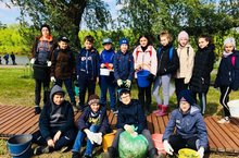 Учащиеся 5-8, 10 классов Муслюмовского лицея после уроков вышли на очистку территории прибрежного парка "Солнечный Ик"