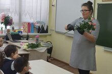 В рамках месячника профориентации Закирова Лилия Дамировна (мама ученика Сахапова Радика) показала мастер-класс по созданию букета из живых цветов. Так же рассказала как ухаживать за цветами в вазе.