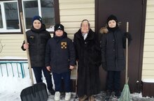 Делать добро и ребятам приятно. Сегодня обучающиеся 6а класса помогли ветерану- учителю Гашуре Салаватовне в уборке снега во дворе.