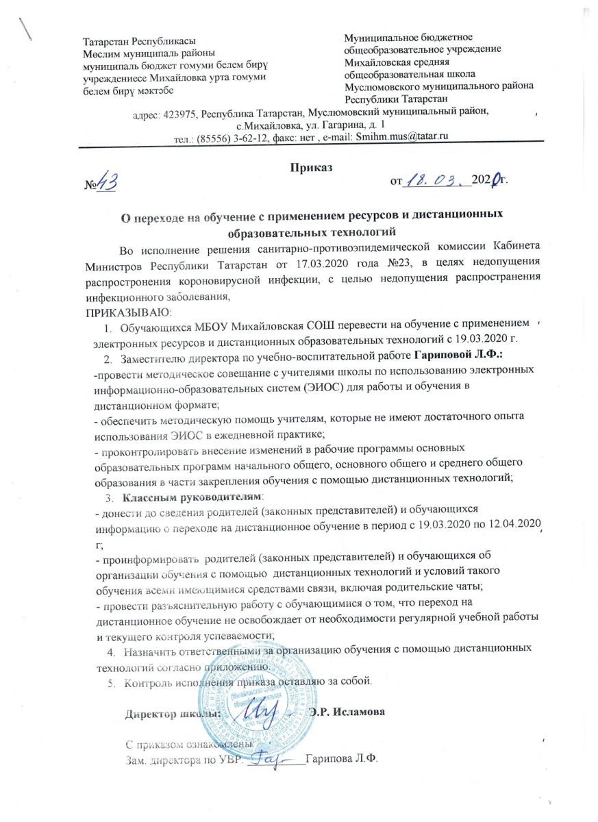- Письмо МО и Н РТ "О реализации организациями, осуществляющими образовательную деятельность, образовательных программ с применением электронного обучения, дистанционных образовательных технологий"