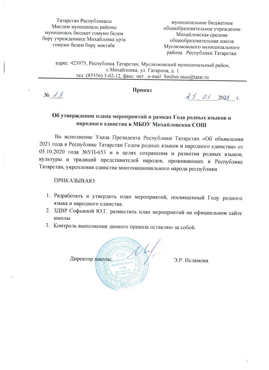 Муниципальное бюджетное общеобразовательное учреждение Михайловская средняя общеобразовательная школа Муслюмовского муниципального района Республики Татарстан