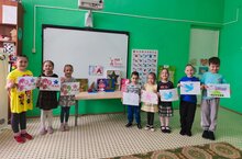 Мәктәпкәчә яшьтәге балалар төркеме дә "Балалар Җиңү рәсеме ясыйлар" акциясенә кушылды.