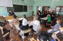 Язгы каникуллар алдыннан полиция хезмәткәре Замалиев Булат белән очрашу булды. Укучыларыбыз тагын бер кат сулыклар янында сак булырга, юл аша бары тик тиешле урында гына чыгарга кирәклеген искә төшерделәр.