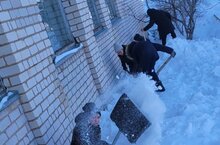 Мәктәп яны территориясен кардан чистарту.