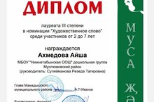 Мәктәпкәчә яшьтәге балалар төркеме уңышлары. Тәрбияче Сөләйманова Р. Т.