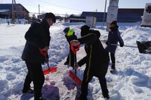 5 нче сыйныф укучылары һәйкәл янын кардан чистартты.