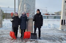 Хәрби- патриотик айлык, сәламәтлек бишьеллыгы кысаларында 8 нче сыйныф укучылары һәйкәл янын кардан чистарттылар.