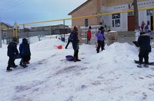 К Новому году в школьном дворе "выросли" снежные ёлки.