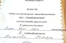 Ученица 9 класса Филипова Ю. заняла II место в творческой выставке посвященной ко дню рождения Г.Тукая. 26.04.2017