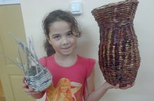 Мөслим сәнгать мәктәбенең рәсем сәнгате бүлеге укытучысы Гаусеева Я.М. укучыларына яңа алымнар кулланып кәгазьдән чыбыклар ясап кәрҗиннәр, вазалар үрү серләрен өйрәтә. 08.04.2015