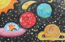 Выставка рисунков, приуроченная ко Дню космонавтики 12.04.2018