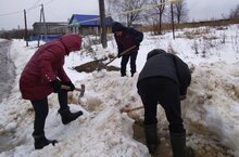 Коллективыбыз өмәләрдә актив катнаша. Бүгенге көндә авыл урамындагы торба башларын кар-бозлардан чистартык.