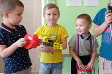 Балалар кичке якта бизибордта бик кызыксынып уйныйлар. Уен вакытында предметларның төсен,формасын,зурлыгын танып белү күнекмәләрен ныгыталар. Мөстәкыйль эшчәнлек процессында ,балалар бер-берсе белән аралашалар.