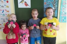 9 января отмечается "День Снегиря". Дети отгадывали загадки про зимующих птиц, слушали пение птиц, называли их. Выполнили аппликацию "Снегири".