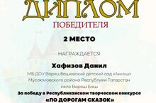 Воспитанник Варяшбашевского детского сада "Аккош" Хафизов Данил принял участие в Республиканском конкурсе "По дорогам сказок"