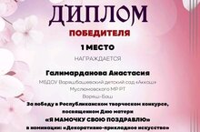 Воспитанница Варяшбашевского детского сада "Аккош" Галимарданова Анастасия приняла участие в Республиканском творческом конкурсе "Я мамочку свою поздравлю".