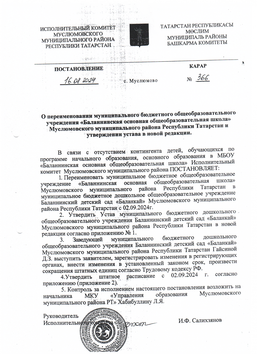 | Адрес: | 423973, Республика Татарстан, Муслюмовский муниципальный район, село Баланны, ул. Советская, д.80 |