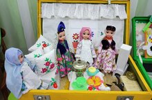 "Чемодандагы әкият" муниципаль конкурс кысаларында бакча тәрбиячеләре "Әкияттә кунакта", "Әкият илендә", "Өч кыз" әкиятенә чемодан театры ясадык.