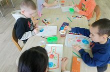 Зурлар төркемендә рәсем шөгылендә "Такталарны Городец чәчәкләре" белән бизәдек. Рус халкының декоратив-гамәли сәнгать предметлары белән таныштык, пумала белән эшләү күнекмәләрен ныгыттык, мөстәкыйль рәвештә төсләрне куллану сәләтен үстердек.