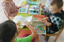 Зурлар төркеме балалары белән авыл китапханәсенә экскурсиягә бардык. Балалар китаплары белән таныштык.