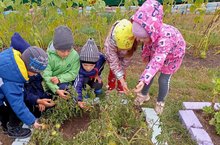 Зурлар төркеме балалары белән тәҗрибә участогында узләре үстергән яшелчәләрне күзәттеләр.
