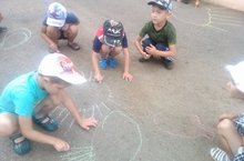 Асфальтка рәсем ясау конкурсы бик кызыклы узды. Балалар берешәрләп тә, төркемләп тә көч сынаштылар.