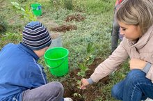 5 нче класс укучылары авыл паркында агач үсентеләре утырттылар.