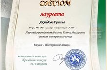 Ахмедова Рушана 15 нче республика фәнни - практик конференция лауреаты булды