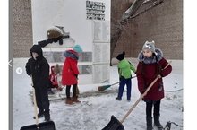 Укучылар даими рәвештә обелиск тирәсен кардан азат итеп торалар.
