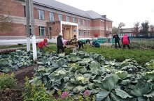 Мәктәп бакчасында көзге уңышны җыю бара