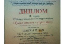 Шәехов Ислам , "Туган телем - серле тел" 5 нче регионара конкурста катнашып, 2 нче дәрәҗә дипломга лаек булды