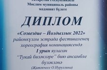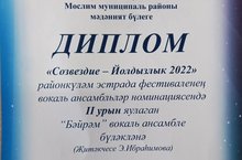 Кичә «Созвездие-Йолдызлык» фестивалендә катнашып "Бәйрәм" җыр ансамбле вокал ансамбльләр номинациясендә 2 урынга лаек булды.