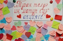 Туган телләр һәм халыклар бердәмлеге елы кысаларында 1-11 сентябрь көннәрендә мәктәбебездә "Туган телдә иң матур сүз" акциясе үткәрелде. 2-11 нче сыйныф укучылары, сыйныф җитәкчеләре белән бергәләп, тормышыбызда төп рольне уйнаган төшенчәләр турында әңгәмә корды, һәр укучы күңеленә иң якын сүзне тактага язып элде. Иң матур сүзләрнең "гаилә" төшенчәсе белән бәйле булуы аеруча сөендерә.