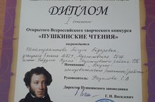 "Пушкин укулары" исемле бөтенроссиякүләм иҗади конкурста Шаймухаметова Айгөл дипломант булды. Җитәкчесе Фазылова С.В. Котлыйбыз!