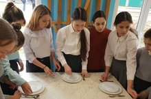 "Мөслим очкыннары" проекты. "Булачак эшмәкәр" кече-проекты кысаларында "Аш-су" түгәрәгендә 8 а сыйныф кызлары өстәл бизәү серләренә төшенделәр