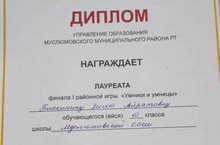 Хореография укытучысы Нуруллина Ольга Станиславовна җитәкчелегендәге Мөслим урта мәктәбенең "Тукай егетләре" бию ансамбле Әлмәт шәһәрендә узган "Сандугач сайрар илем" фестивалендә II дәрәҗә Лауреат исеменә лаек булды һәм акчалата сертификат белән бүләкләнде. Котлыйбыз!!! Афәрин!!!