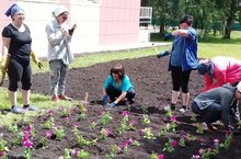 Коллектив школы ведут активную работу по облагораживанию пришкольной территории: сажают цветы, пропалывают сорняки, поливают и рыхлят насаждения.