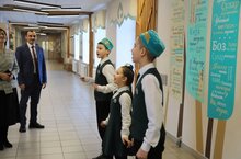 Кунагыбыз, мәктәптә эшләүче “Асылташ” балалалар театры эшчәнлегенә бәя биреп, укучыларның ихлас йөрәктән уйнауларын билгеләп үтте.Сегодня наша школа приняла гостей.Василь Гаптелгаязович посетил нашу школу, осмотрел кабинет татарского языка, музей, возложил цветы к бюсту Мусы Джалиля. Гость, оценив деятельность детского театра “Асылташ”, работающего в школе, отметил, что ученики играют от всего сердца.