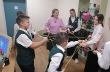 "Психология атналыгы" кысаларында укучыларның психоэмоциональ киеренкелеген киметү максатында мәктәп психологы Хәлиуллина Л. М. тренинг элементлары белән "үз-үзең белән гармониядә" уен дәресе үткәрде