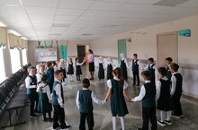 Мәктәп психологы Л.М.Хәлиуллина 1сыйныф укучылары белән "Әйдәгез,танышабыз!" дигән темага тренинг элементлары белән уен үткәрде.